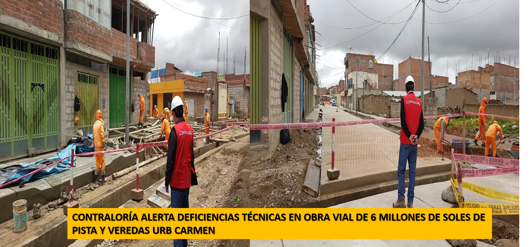 ILAVE: CONTRALORÍA ALERTA DEFICIENCIAS TÉCNICAS EN OBRA VIAL DE 6 MILLONES DE SOLES DE PISTA Y VEREDAS URB CARMEN