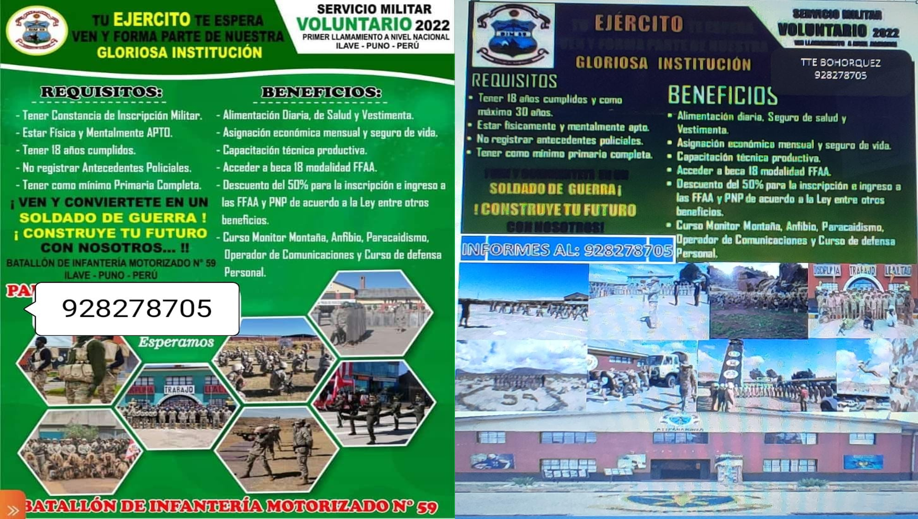 Ven, el» BATALLON DE INFANTERÍA MOTORIZADO N° 59 – ILAVE» te ESPERA para formar parte del Glorioso EJÉRCITO PERUANO.