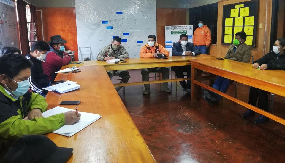 Chata Condori esta mañana participó de la reunión de coordinación para la implementación de la segunda Operación TAYTA (Operación Territorial de Ayuda para el Tratamiento y Aislamiento frente al COVID-19) a llevarse a cabo en la jurisdicción de la provincia El Collao, la reunión convocada por la Plataforma de Defensa Civil, donde participaron el comandante del Cuartel BIM 59 Pachacutec, Alcaldes Distritales y el representante de INDECI, entre otras autoridades.