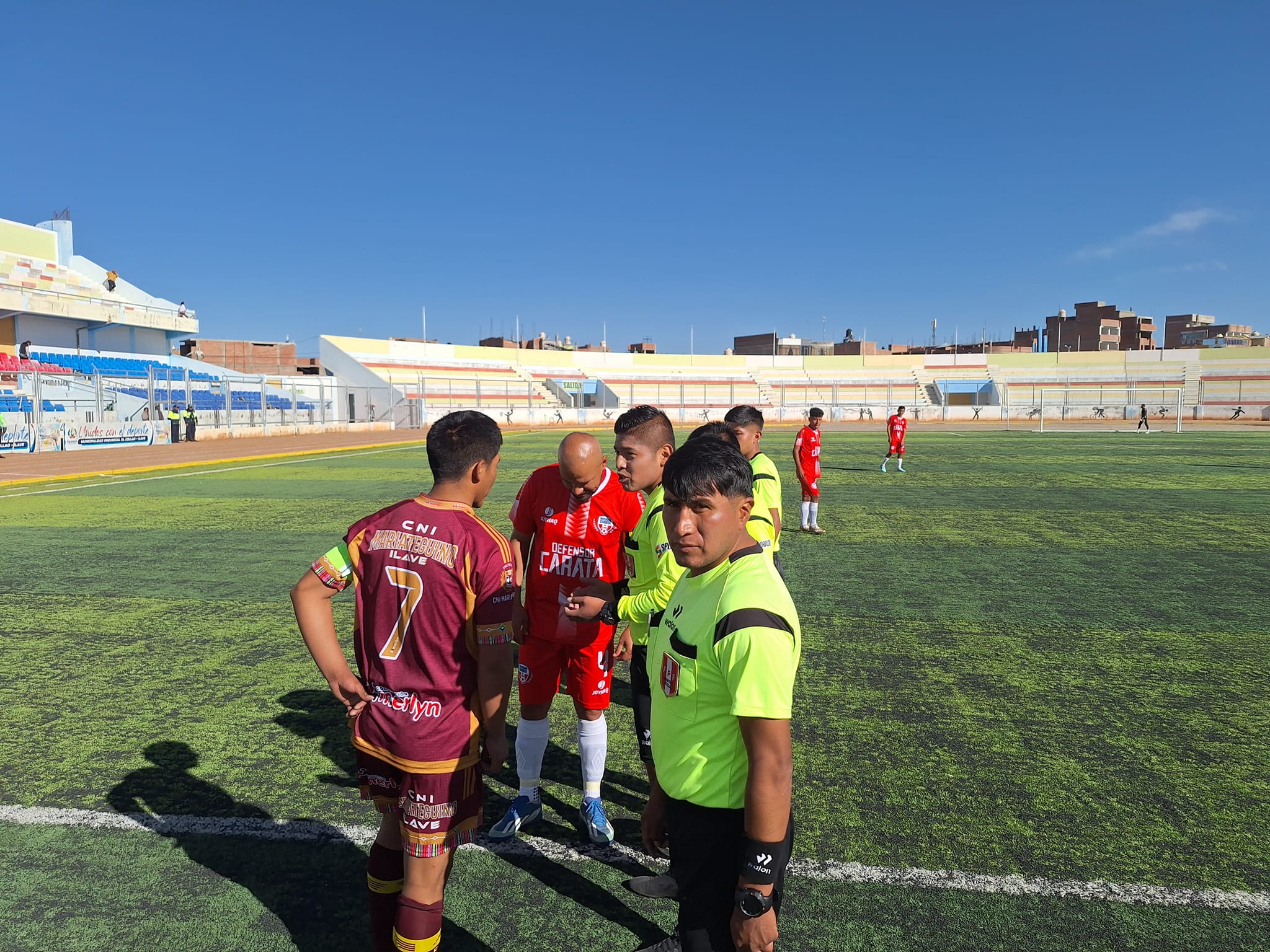 El partido comenzó con una clara oportunidad para CNI cuando Edwin «chino» Flores estrelló un tiro libre en el travesaño. Además, Leonel Chura no pudo definir un mano a mano, y la pelota terminó desviada. Por otro lado, Defensor Carata de Coata aprovechó las desatenciones defensivas de CNI, y Yumer Morales anotó dos goles, poniendo el marcador 2 a 0 en el primer tiempo y así finalizaría la primera parte del partido.