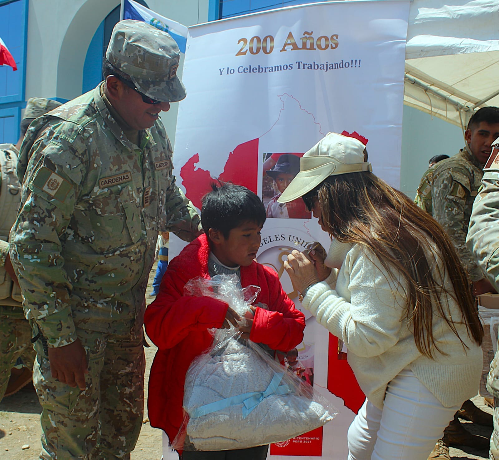 El sábado último, en el Centro Poblado de Ullacachi y Coraraca de la Provincia de El Collao, departamento de Puno, se llevó a cabo una actividad de apoyo humanitario, la cual contó con la participación de la 4a Brigada de Montaña a través del Batallón de Infantería N°59, la IEP Andrés Avelino Cáceres, la Fundación Ángeles Unidos en Acción, la Dirección Regional de Salud, entre otras instituciones locales.