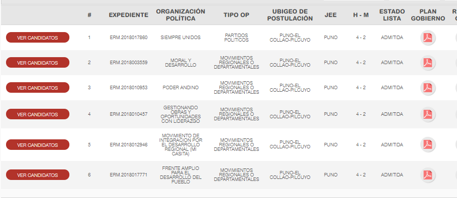 - Movimiento De Integración Por El Desarrollo Regional (Mi Casita) – Pedro II Lucio Colque Ordoñez