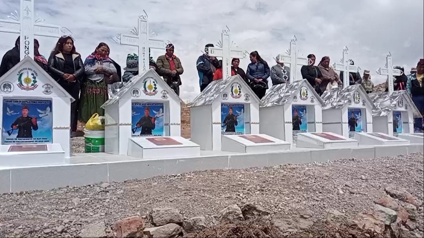 Familiares de los soldados Franz Canasa Cahuaya, Álex Quispe Serrano, Elvis Pari Quiso, Elías Lupaca Inquilla, Percy Alex Castillo Pongo y Carlos Quispe Montalico, quienes fallecieron al intentar cruzar el río Ilave, se reunieron junto a un grupo de militares en la zona de Huancuni para celebrar una misa en memoria de los jóvenes.