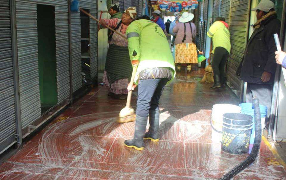 Para cumplir con esta jornada, la Municipalidad puso a disposición camiones cisterna para apoyar en la limpieza de pisos, pasadizos y alrededores del mercado, comerciantes trabajaron desde la víspera y a partir de las 5:00 a.m. se dispusieron a realizar la limpieza de sus puestos de venta.
