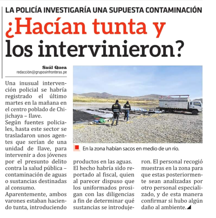 ILAVE: “HACIAN TUNTA Y LOS INTERVENIERON” LA POLICIA INVESTIGARIA UNA SUPUESTA CONTAMINACION