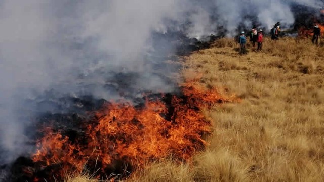Señaló que el incendio inició aproximadamente a las 09:00 horas de este martes al lado del distrito de Acora y se extendió hasta Siraya, Cangalli y un centro poblado aledaño; hasta el mediodía del martes se reportaba de un aproximado de 40 hectáreas de pastizales dañados.