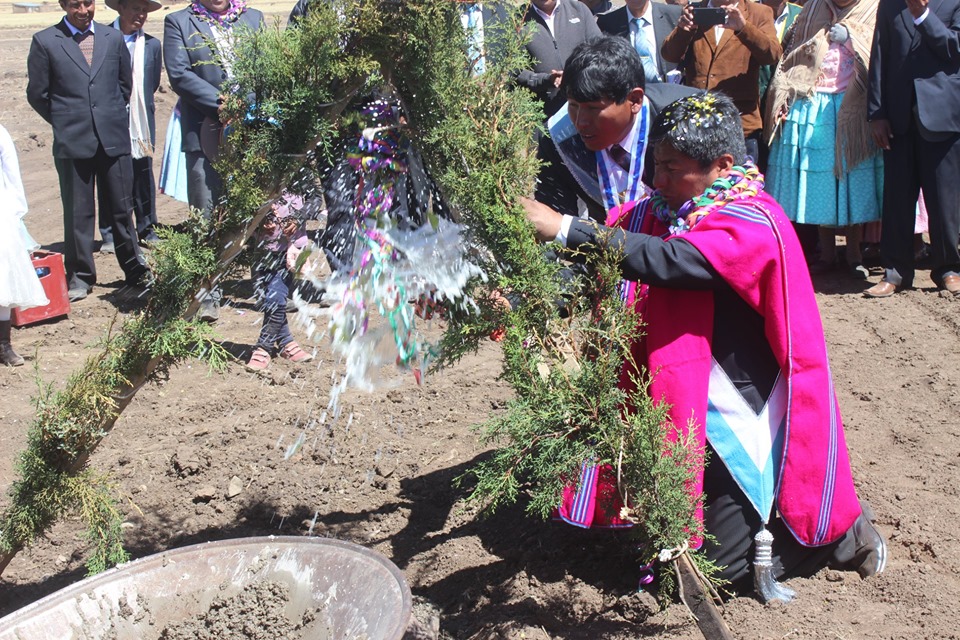 La primera autoridad municipal, manifestó que una larga caminata comienza con un gran paso y poco a poco vamos implementado con obras para los centros poblados de nuestra provincia y hoy iniciamos la construcción de este moderno complejo deportivo. Luego el burgomaestre Provincial procedió al rompimiento de la botella de champan para posteriormente hacer la colocación de la primera piedra como símbolo de inicio de obra.