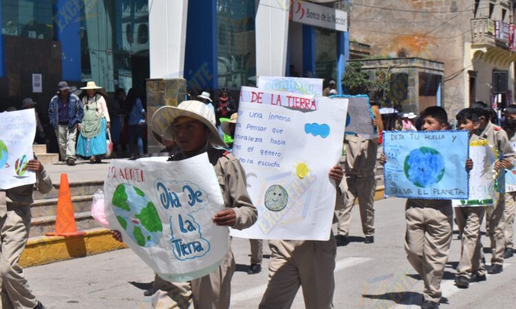 Estudiantes de diez Instituciones Educativas de la ciudad de Ilave participaron de la marcha de sensibilización por el Día Internacional de la Tierra que se recuerda cada 22 de abril, la apertura de la actividad estuvo a cargo del Regidor Antonio Ccallo Escobar en representación de la primera autoridad provincial de El Collao.