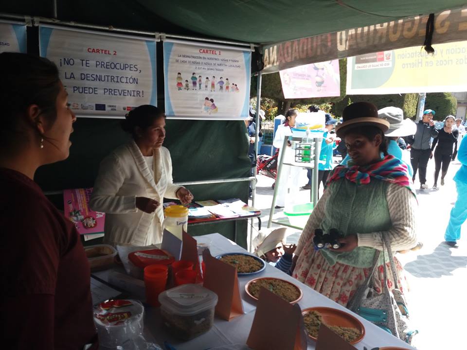 Los profesionales de la salud desde tempranas horas de la mañana estuvieron al servicio de la población en las 6 diferentes carpas, en la Carpa 01: Descarte de anemia, carpa 02: Tratamiento y prevención de la anemia, carpa 03: Control y desarrollo, carpa 04: Administración de vacunas, carpa 05: Orientación Nutricional, demostración y degustación de comidas ricas en hierro, carpa 06: Captación y afiliación al SIS.