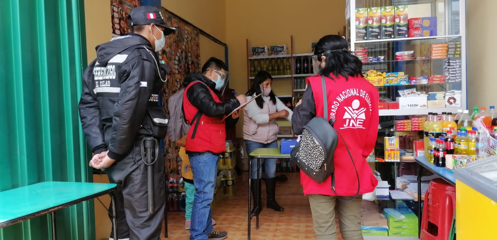 En marco de las elecciones generales 2021, Los Fiscalizadores del Jurado Nacional de Elecciones (JNE) conjuntamente con los agentes de Seguridad Ciudadana SERENAZGO realizaron las notificaciones sobre ley seca a las tiendas que se encuentran a los rededores de los centros de votación y se exhorto a los propietarios de las viviendas el retiro de la propaganda política, con la finalidad de hacer cumplir la normativa electoral para que se garanticen que la votación transcurra con normalidad.