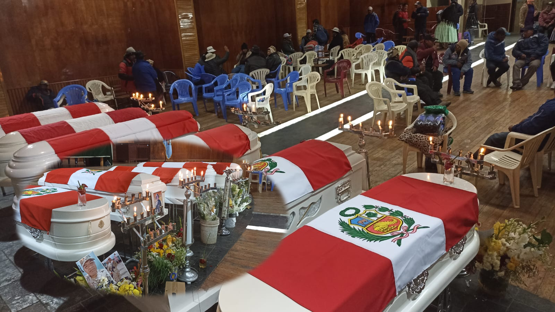 Ayer por la noche, los cuerpos de los 6 soldados fallecidos del cuartel Pachacutec de Ilave, fueron traslados hasta la plaza de armas y frontis de la municipalidad provincial El Collao, luego de retirar de la morgue del hospital de Ilave.