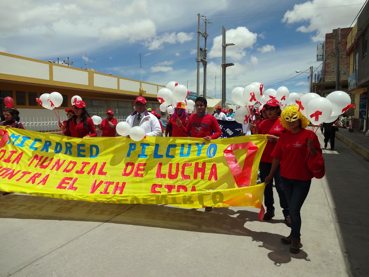 Hazte la prueba es mejor saber, juntos contra el VIH, si tienes relaciones sexuales protégete fueron la mensajes que se mostraron a la población en el pasacalle de sensibilización por las arterias de la ciudad de Ilave por el “Día Mundial de Lucha Contra el SIDA” desarrollado el día jueves 01 de diciembre del presente año, asimismo también participaron estudiantes de la I.E.P. Perú Birf, quienes marcharon con mensajes alusivos a Salud Bucal por recordarse este próximo 04 de diciembre el “Día de la Odontología”