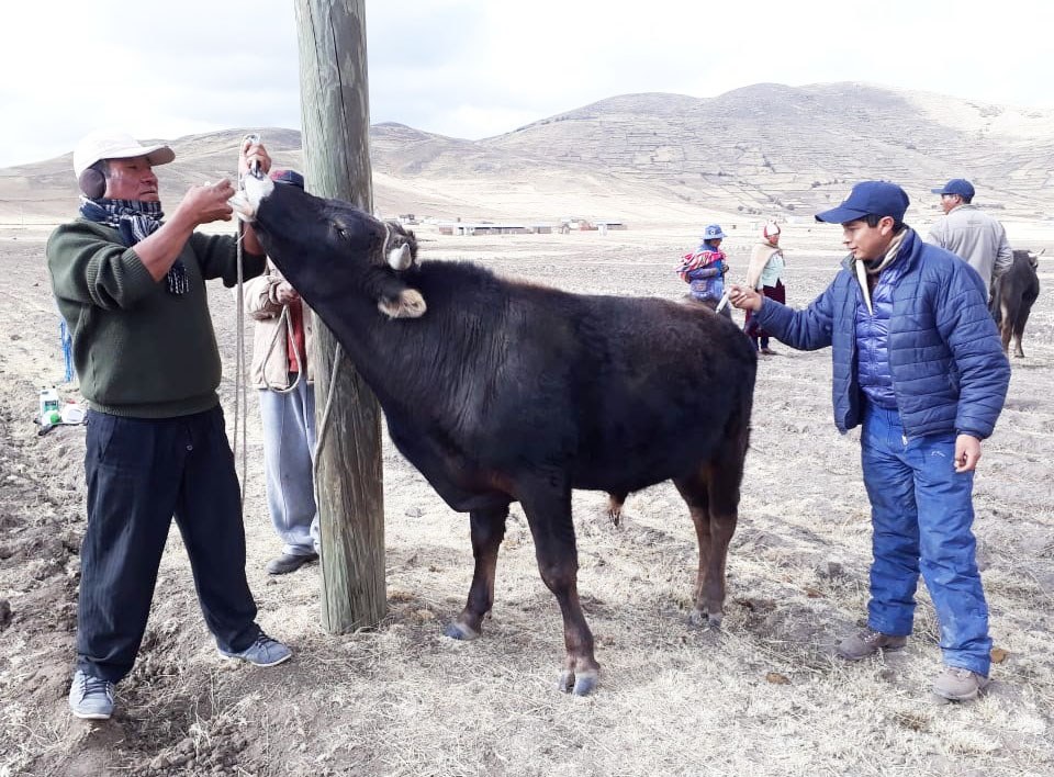 Más de 350 cabezas de ganado entre vacunos y ovinos de los Centros Poblados de San Juan de Huinihuinini, Kimsamarka y Pusuyo, fueron dosificadas para reforzar su sistema inmunológico con antiparasitarios, antibióticos y vitaminas como medida preventiva a enfermedades que afectan la producción pecuaria, produciendo mortalidad, disminución de la producción de leche, carne, lana y la baja aceptación de consumo en los mercados.