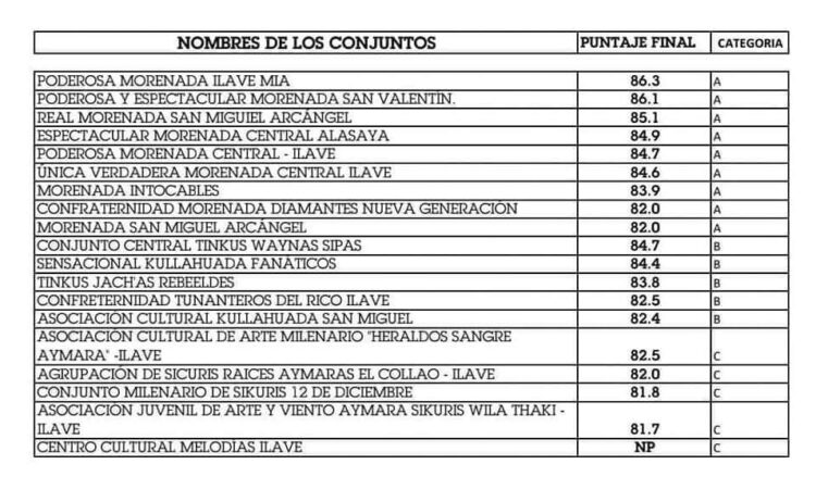 La premiación será el día de mañana 30 de setiembre del 2024, según los acuerdos establecidos, por todos los conjuntos y agrupaciones que son parte de la Asociación Folklórica de Ilave.
