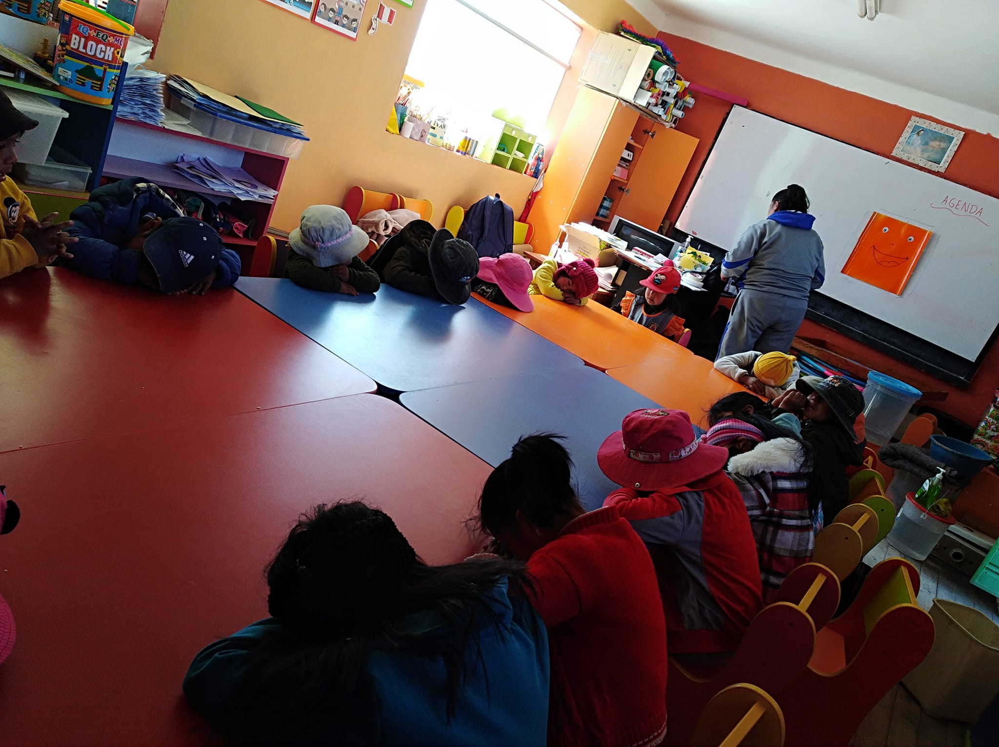 Preocupante: Niños de jardín Alto Alianza 724 de Ilave reciben clases en ambiente hacinado. Este ambiente es múltiple es: Aula, dirección, almacén de alimentos de kaliwa warmi.