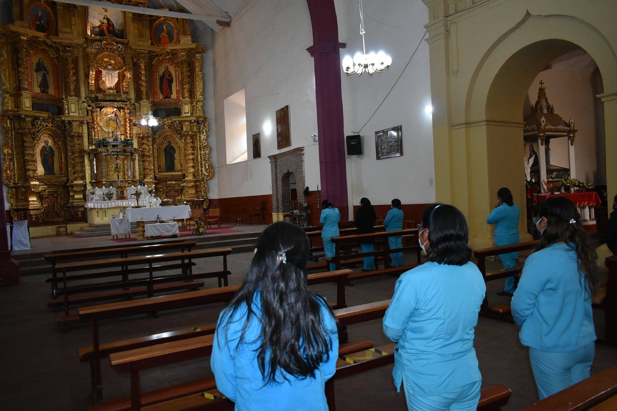 El párroco de la iglesia San Miguel de Ilave, ofició la misa por la salud de los trabajadores enfermeros y/o enfermeras y de sus familiares, asimismo durante la eucaristía, los participantes también oraron por la salud de todos.
