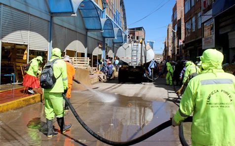 El ultimo martes 18 de julio a pocos días de celebrarse el aniversario patrio, la comuna collavina a través de la Subgerencia de Medio Ambiente, Sub Gerencia de Comercialización y Equipo Mecánico participaron en la jornada de limpieza desarrollado en el Mercado Central de Ilave y anexos.