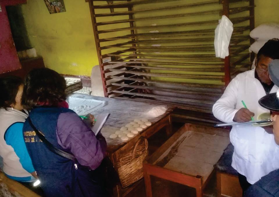 Estos trabajos iniciaron hoy en horas de la mañana junto al Ministerio Público de Ilave con el apoyo de efectivos de seguridad de la Municipalidad. Hasta el momento se intervinieron seis panaderías de la ciudad, en las cuales se verificó las condiciones del preparado y almacenamiento de panes, biscochos, galletas, tantawawas, entre otros.