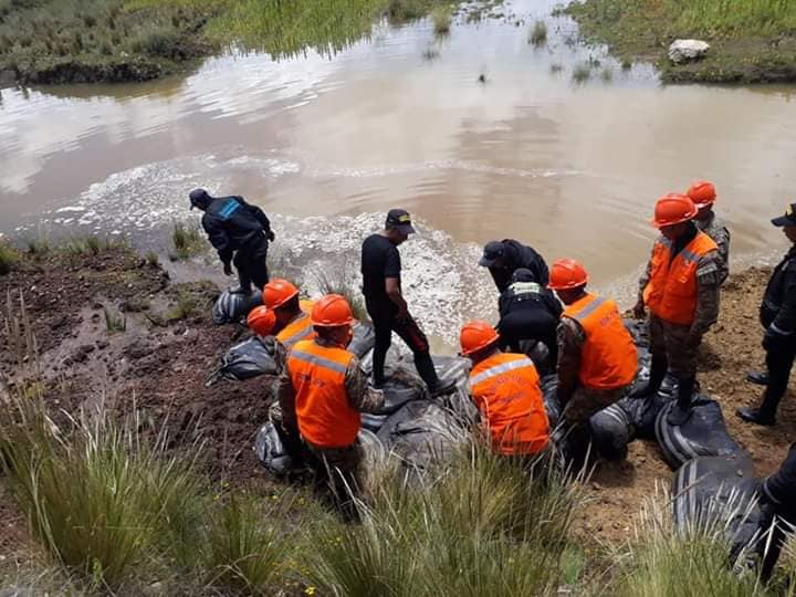 Los trabajos de reforzamiento, se realizó con apoyo del ejercito peruano, y personal de serenazgo de la municipalidad provincial de El Collao – Ilave, para reducir el riesgo de desborde, ante las continuas precipitaciones pluviales.