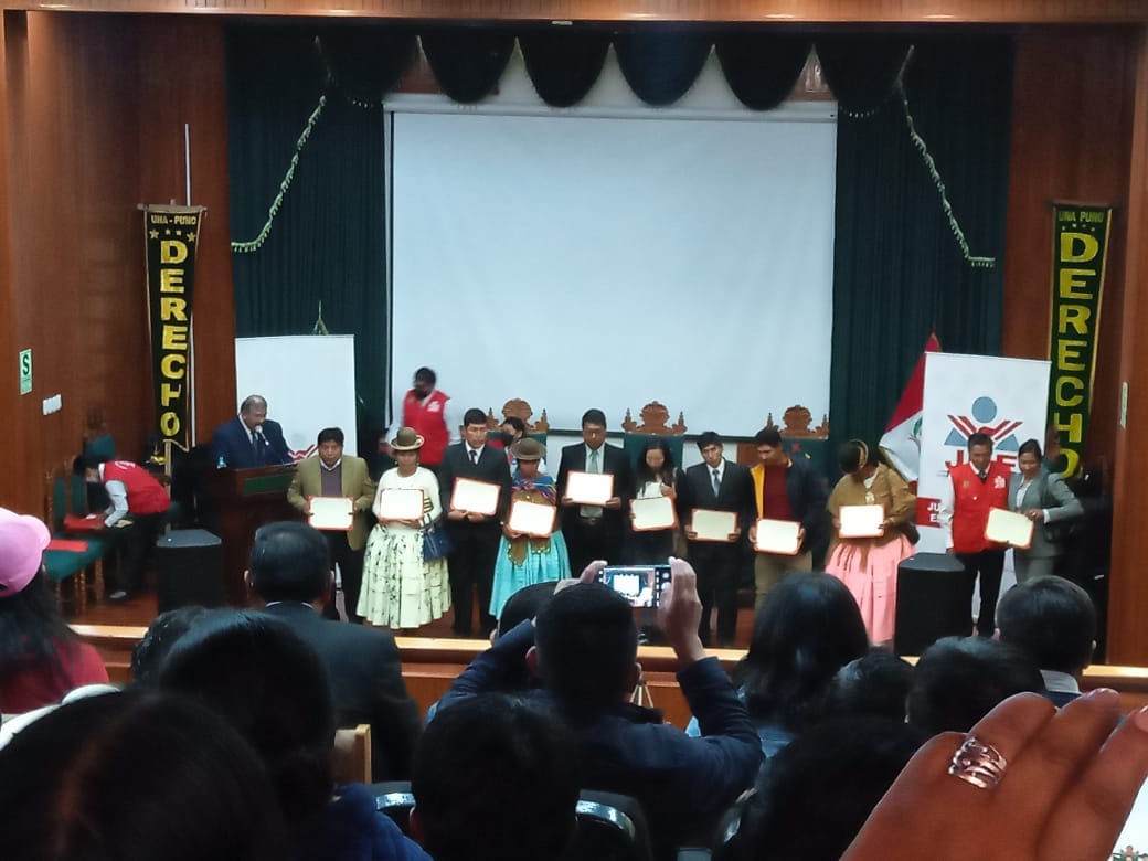 El Jurado Electoral Especial de Puno inició desde las 9:30 de la mañana con la ceremonia de entrega de Credenciales a las autoridades municipales electas de los distritos y de las provincias de Chucuito, El Collao, Yunguyo y Puno, se realizó en el auditorio de la facultad de derecho UNA Puno.