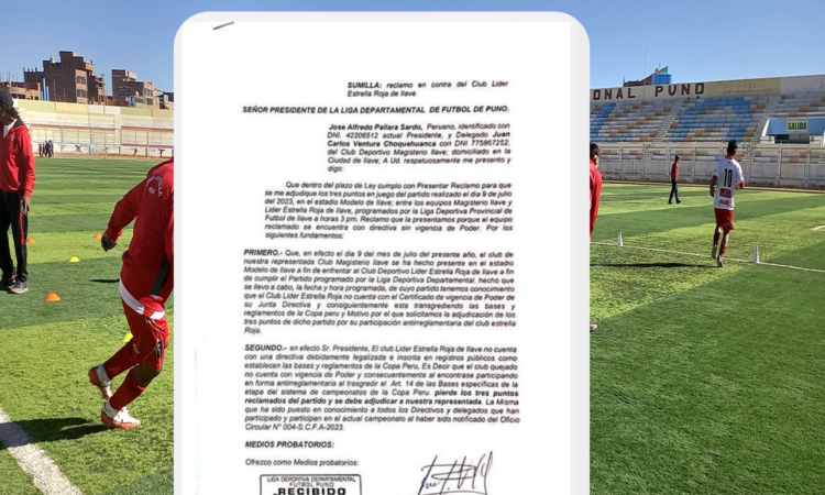 Ilave: Reclamo del Club Deportivo Magisterio contra el Club Lider Estrella Roja