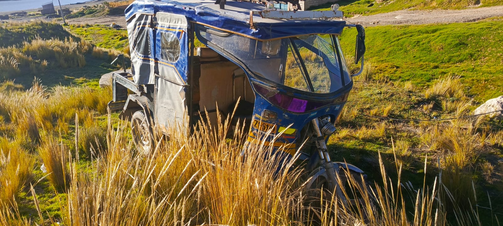 Ilave: rescatan moto taxi a punto de caer a un riachuelo en zona urbana
