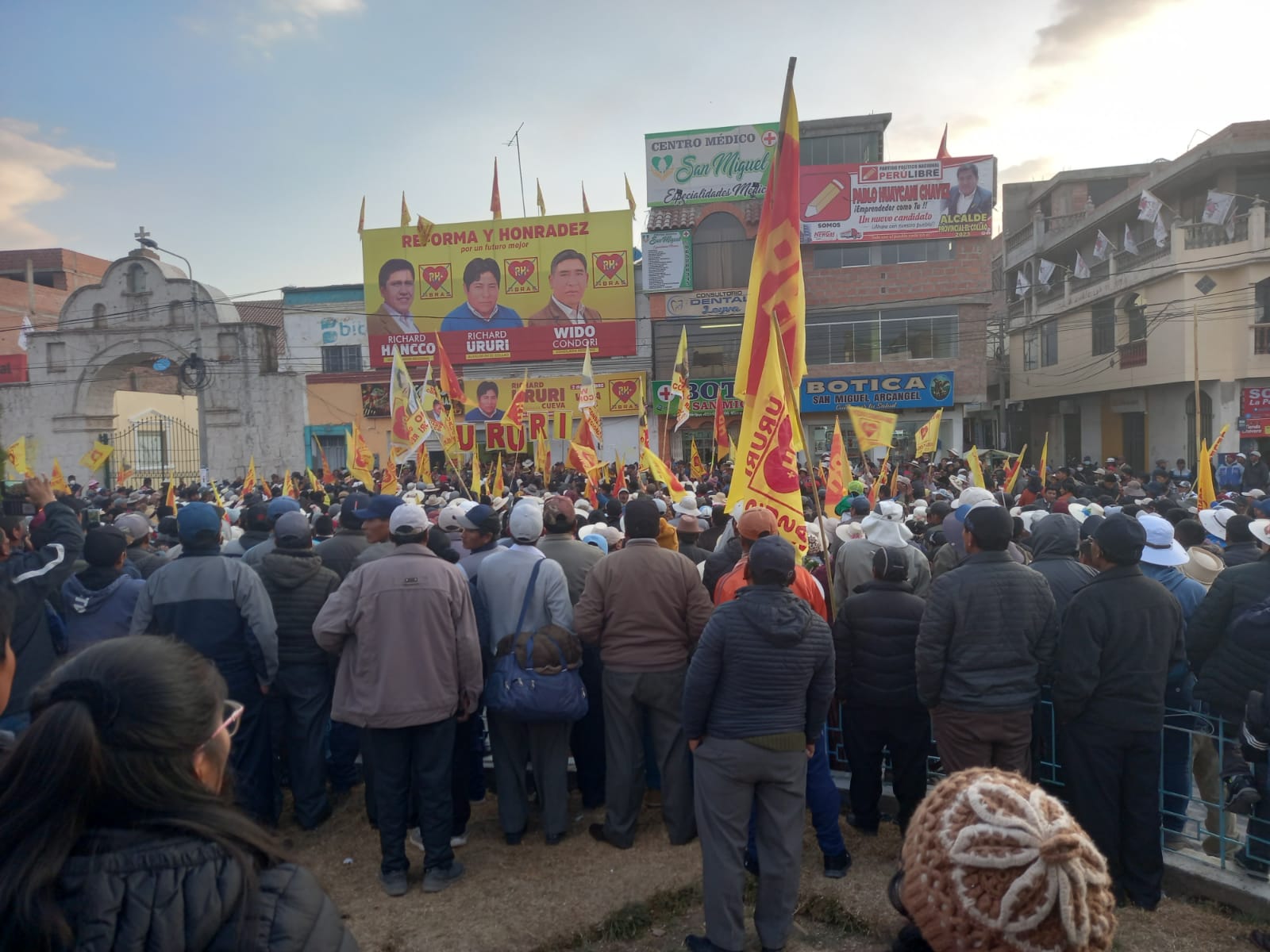 Tras conocerse los resultados al 100.000 %, el electo alcalde Richard Ururi Cueva ayer, junto a sus simpatizantes se dio un baño de popularidad, quienes se mostraron contentos por el triunfo obtenido en estas elecciones 2022.