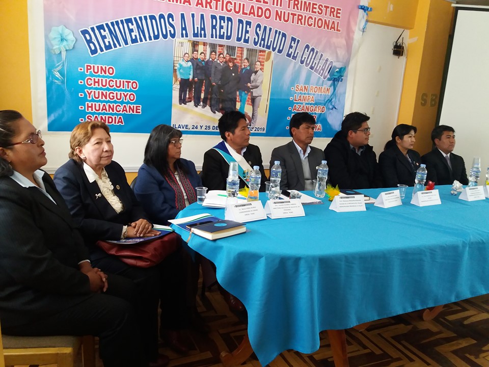 En el auditorio del Hospital II – 1 Ilave, se desarrolló dicha evaluación con la presencia de la Directora Ejecutiva de Salud de las Personas de la DIRESA PUNO, Médico Lourdes Guerra Cabrera, Director de la Red de Salud El Collao Médico Moises Chambi Condori, Alcalde de la Municipalidad Provincial El Collao – Prof. Villanueva Maquera Resalazo, El Alcalde del distrito de Pilcuyo – Lic. Elmer Calliri Chura, el Coordinador Regional del Programa Articulado Nutricional – Lic. Pyer Alvarez y demás funcionarios de la Dirección Regional de Salud Puno. Y es preciso señalar la presencia de las 10 Redes de Salud presentes. A quienes se les dio la bienvenida con un programa especial, preparado por el equipo del Articulado Nutricional de la Red de Salud El Collao
