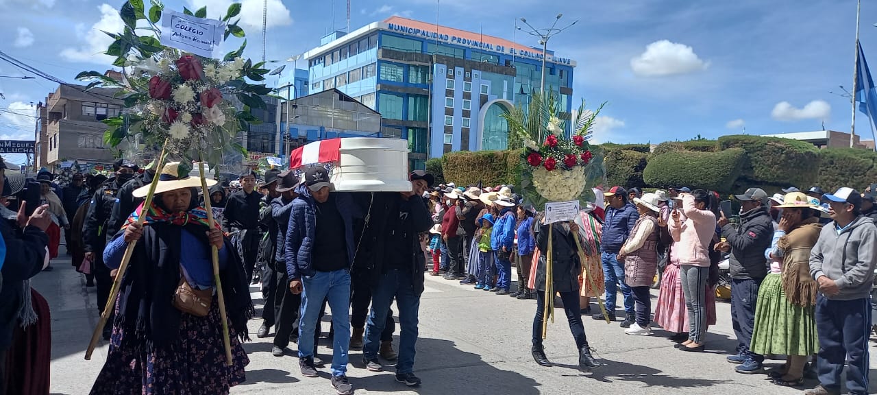 Asimismo, estuvo las autoridades de la provincia El Collao, el alcalde Richard Ururi Cueva e regidores, y en donde participaron familiares y cientos de pobladores muy indignado por esta tragedia.