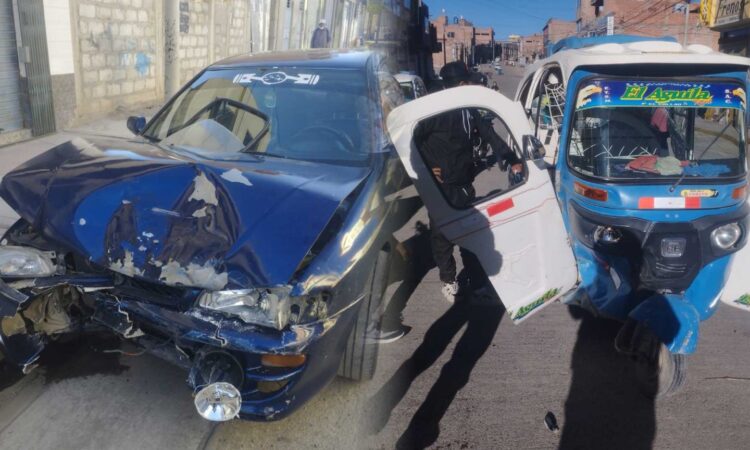 Ilave: un accidente entre un automóvil y una moto torito dejó una persona herida y daños materiales