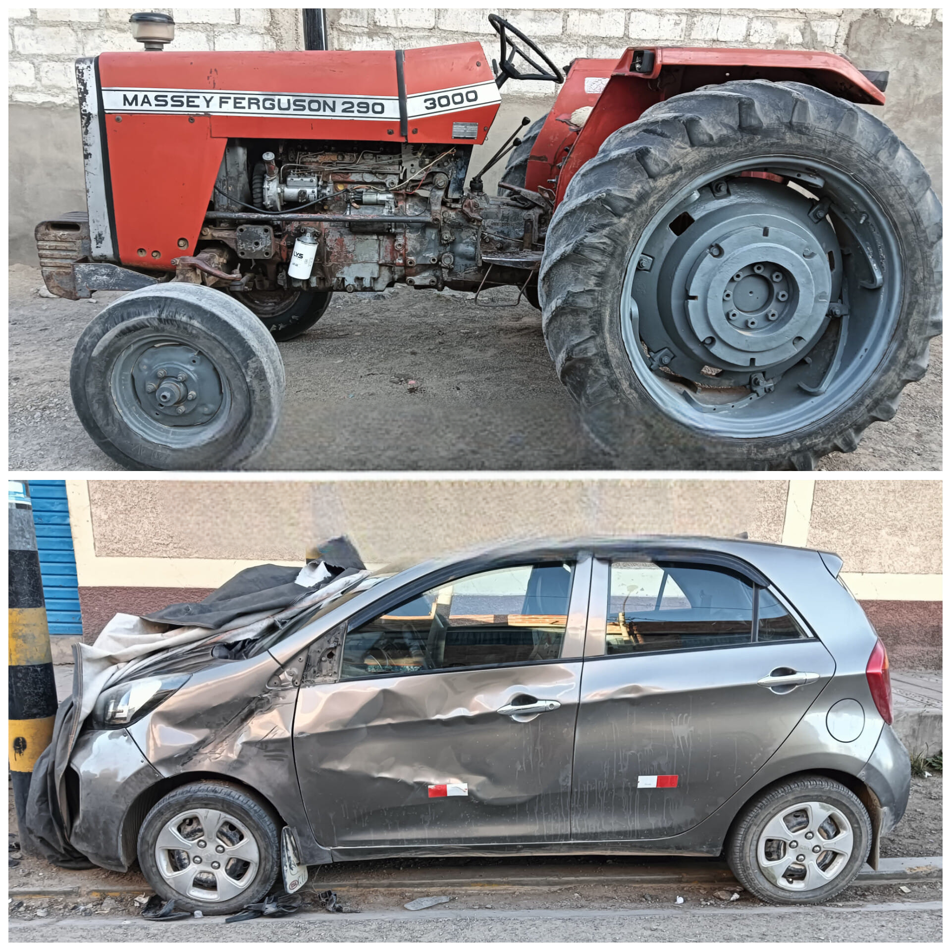 El conductor de un tractor identificado como Facundo Ticona Ccama (40), fue detenido por la policía tras ser denunciado por Carmelo Mamani Ramos (48), propietario de un auto de placa de rodaje V7J-398, él señaló que su auto presentaba daños materiales tras ser chocado por el tractor.