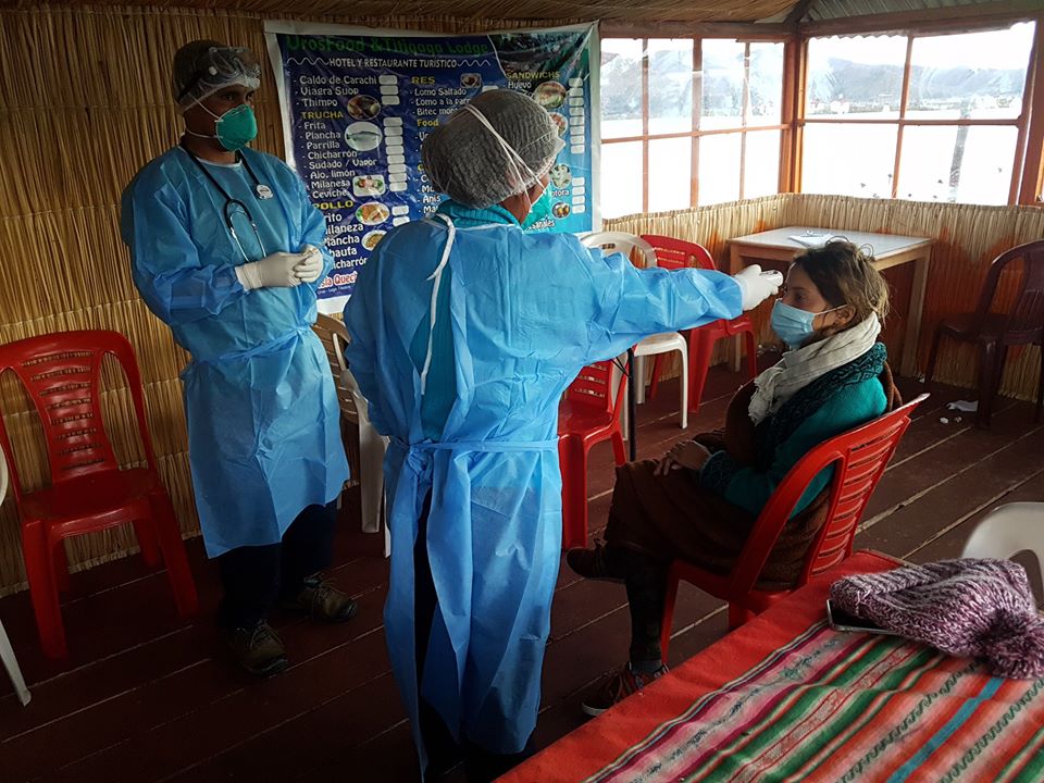 Personal de Salud de la Red de Salud Puno en coordinación con la Capitanía del Puerto y Policía de Turismo acudieron hasta la Isla Quechua Corazón para hacer las evaluaciones médicas del Covid-19, en donde el Médico Brigadista Luis Miguel Donayre Atúncar, señaló que la intervenida no presenta sintomatología alguna y se encuentra clínicamente saludable.