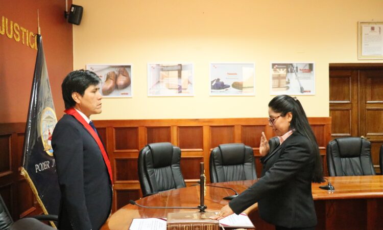 El Presidente de la Corte Superior de Justicia de Puno (CSJPU), Juan Francisco Ticona Ura, tomó el juramento de Ley a la magistrada Norma Vilca Morales, quien a partir de la fecha, asumió el cargo de Jueza Supernumeraria del Juzgado de Paz Letrado de Ilave.