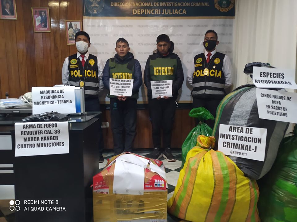 También a los investigados, se les halló en su poder parte de la mercadería del comerciante, prendas de vestir que le habrían sustraído, así como equipos tecnológicos como cámaras de video vigilancia y otros objetos de valor de propiedad del agraviado.
