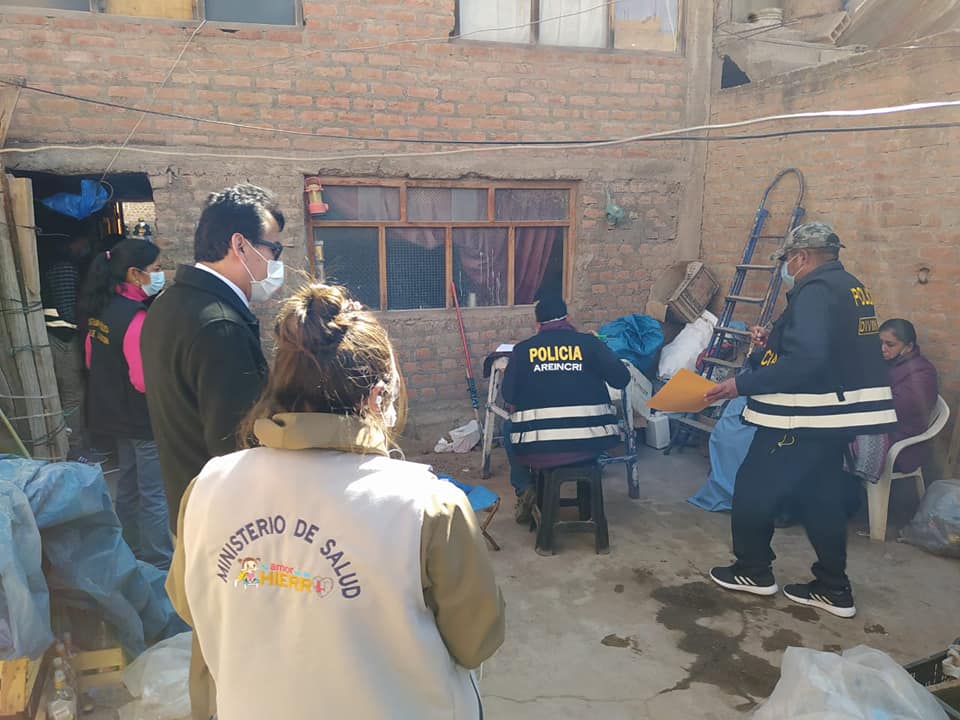 En intervención programada por la Fiscalía e integrantes de la Policía Nacional, el Ministerio de Salud a través del director del hospital Carlos Monge Medrano Dr. Freddy Velásquez Angles y personal de salud ambiental, participo hoy en la intervención de una vivienda donde funcionaba una fábrica clandestina de bebidas alcohólicas.