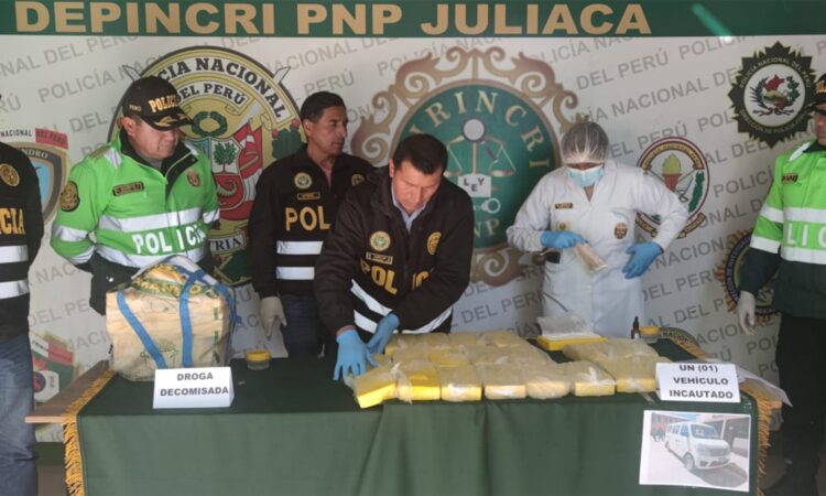 Juliaca: La policía detuvo a dos personas que en su poder tenían 40 paquetes de clorhidrato de cocaína