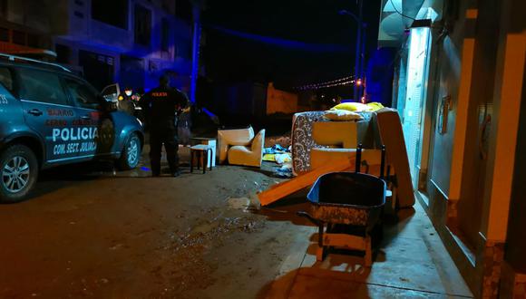 Los serenos y policías, al ser alertados del hecho, se constituyeron en el lugar y encontraron en la vía pública colchones, sillones y otros objetos, que presuntamente fueron sacados por los sospechosos.