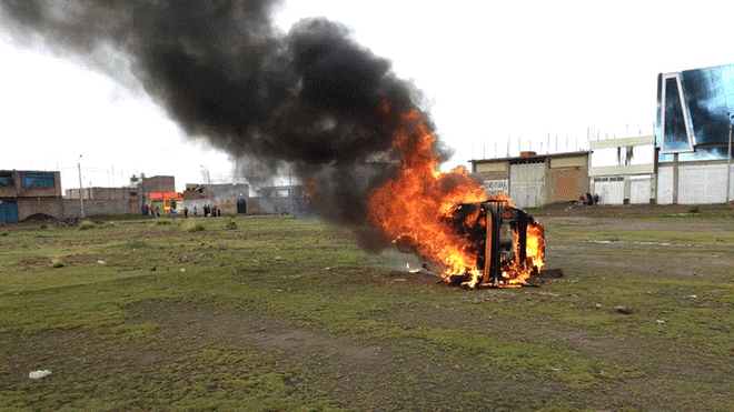 Juliaca: Pobladores queman mototaxi de chofer que golpeó y abusó de pasajera en Juliaca