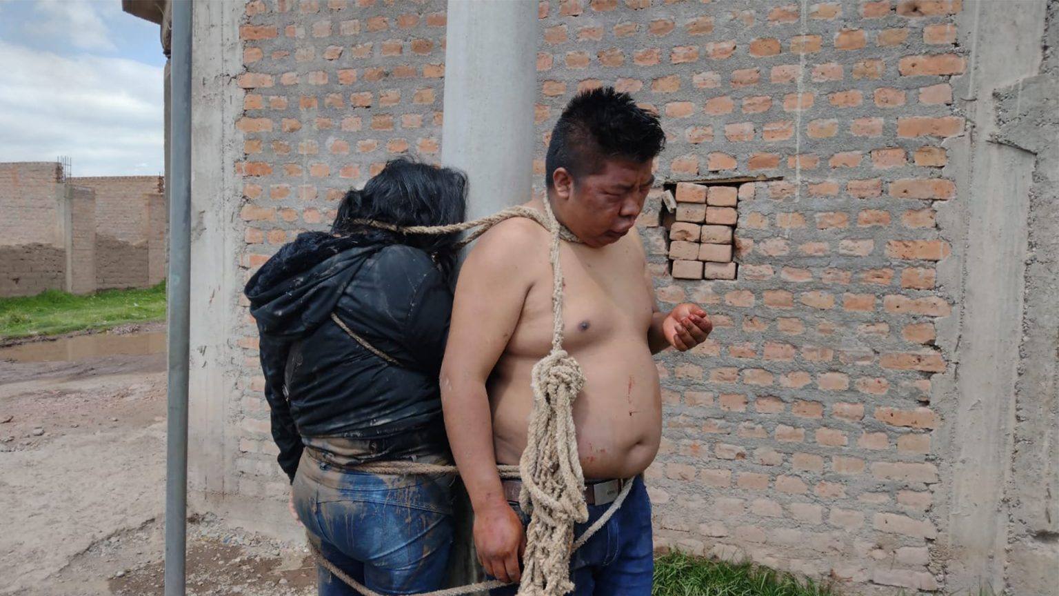 Tras recibir un duro escarmiento, a ambas personas las despojaron de sus prendas de vestir, los obligaron a caminar en esas condiciones. Luego, los ataron a un poste de alumbrado público con la intención de lincharlos. Sin embargo, la intervención de la Policía Nacional evitó el ajusticiamiento popular.