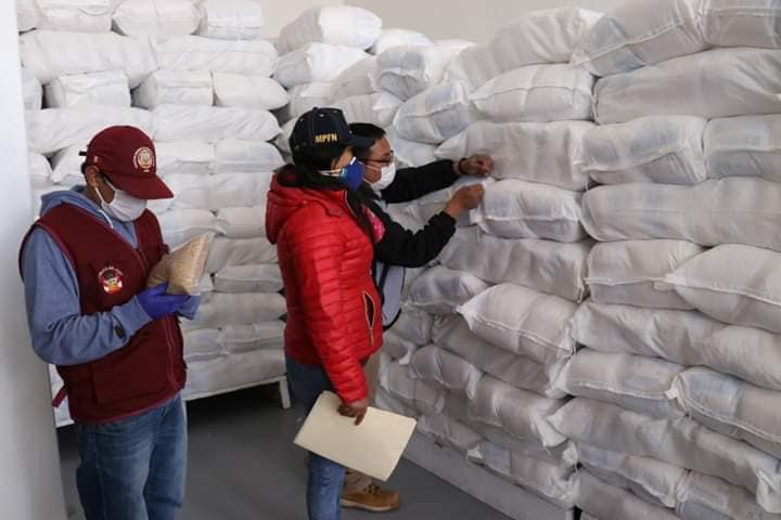 Autoridades del comité multisectorial, dirigentes de la sociedad civil y autoridades de la provincia de San Román, en horas de la mañana, verificaron los productos que se encuentran en los almacenes que fueron adquiridos para la distribución de la canasta básica familiar, que serán entregados a las familias vulnerables, quienes vienen siendo afectados por el estado de emergencia emitida por el gobierno nacional ante el avance del COVID-19.