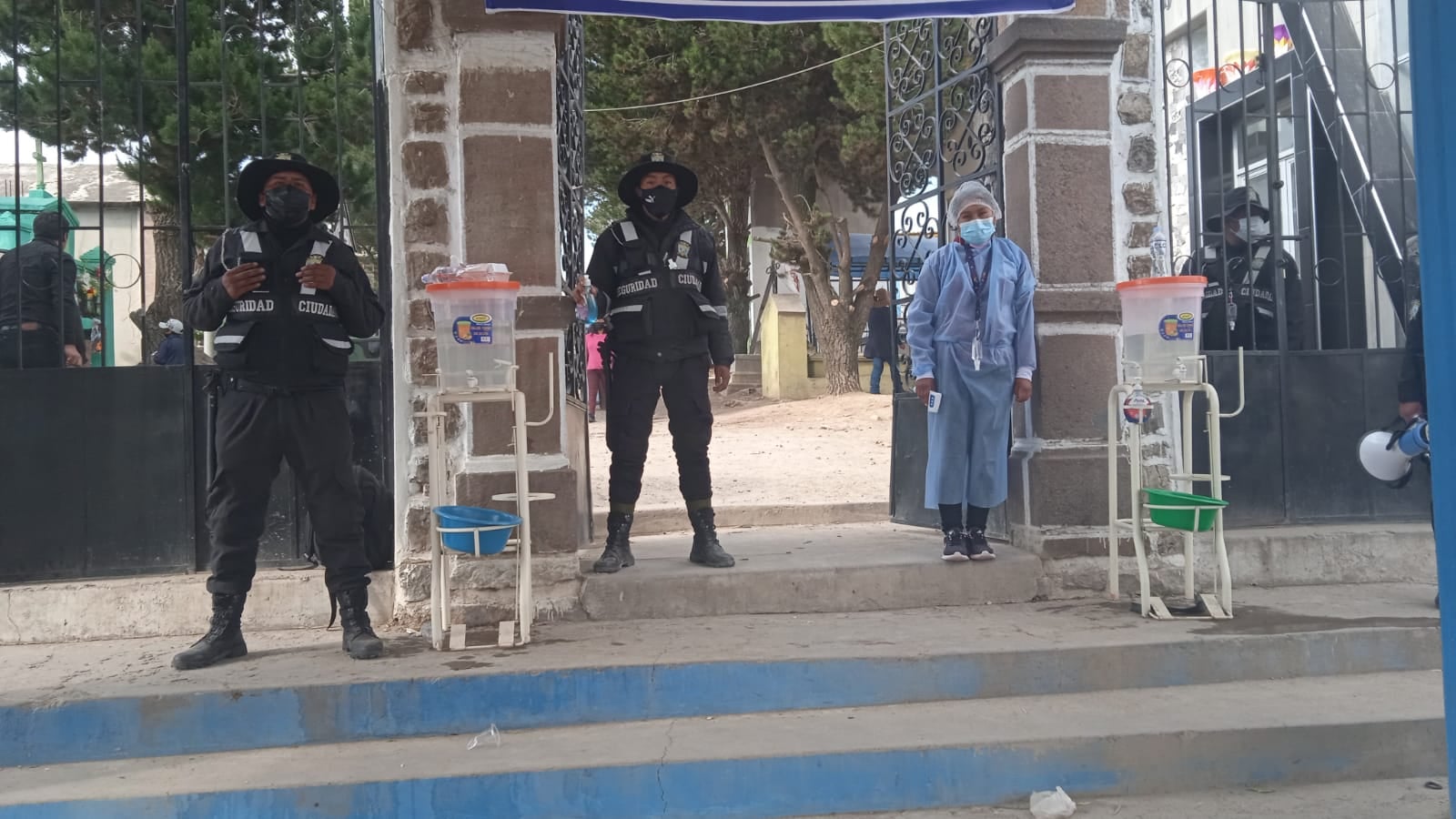 El personal de Seguridad Ciudadana realiza estricto control para ingresar al cementerio de la ciudad de Ilave. Este 2 de noviembre hay bastante concurrencia de parte de la población de visitar a sus difuntos.