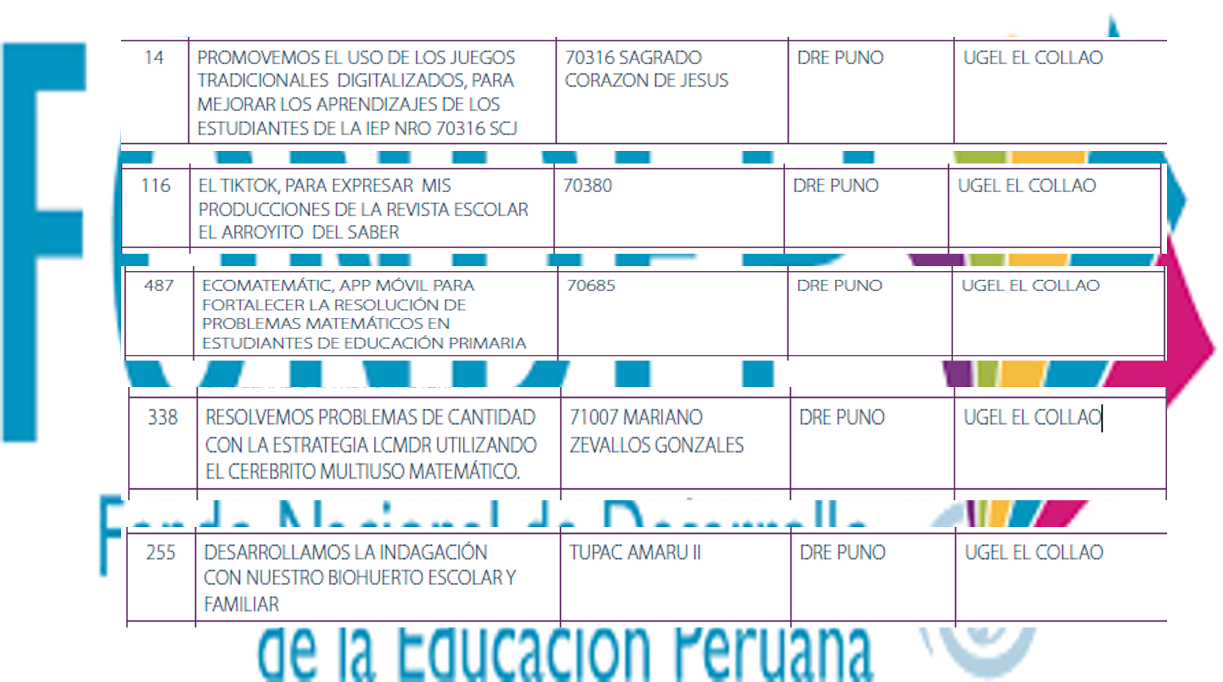 El Fondo Nacional de Desarrollo de la Educación Peruana (FONDEP) dio a conocer a los proyectos educativos que, elaborados por docentes y directivos de 625 escuelas del país, resultaron ganadores en el 4° Concurso Nacional de Proyectos de Innovación Educativa 2022.