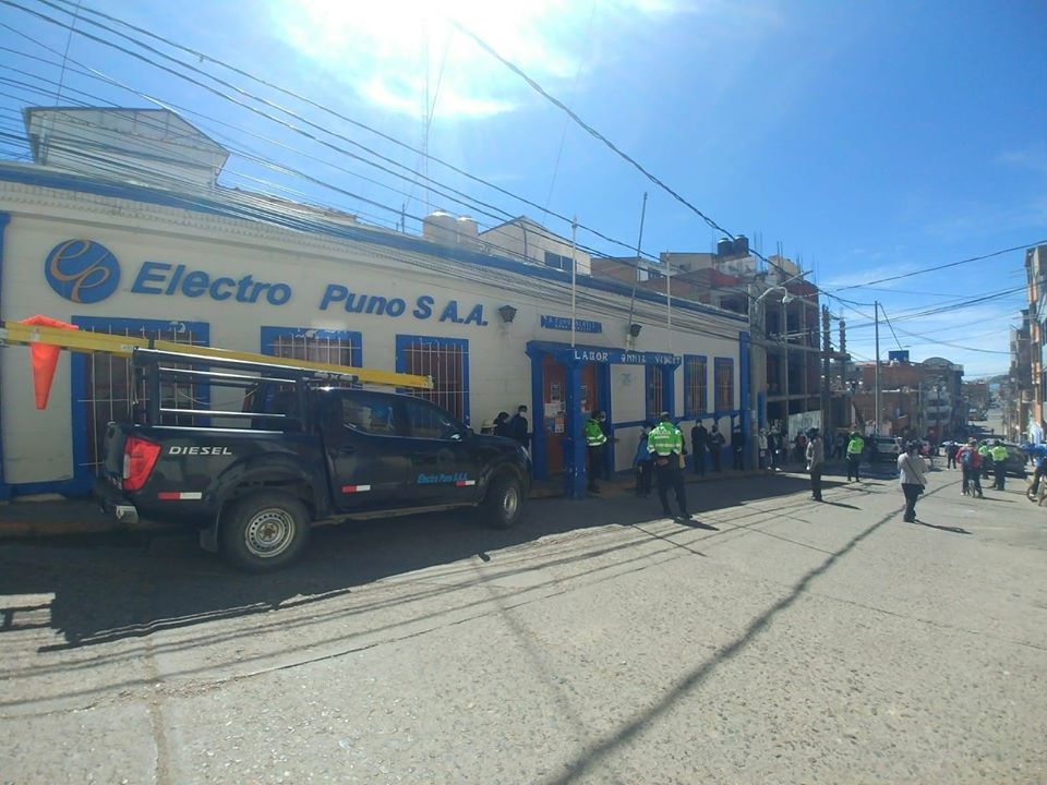 Varios pobladores de la región Puno protestaron en los exteriores de las instalaciones de la empresa eléctrica exigiendo la refacturación de los recibos de luz.