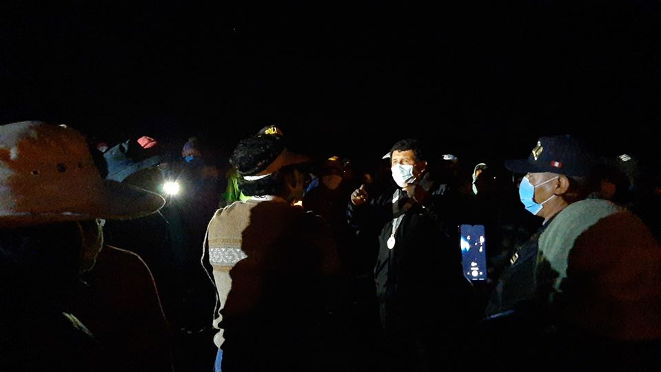 Sin embargo hubo un grupo que no aceptaba la propuesta, estaban decididos a continuar, y fue necesaria la presencia del Fiscal de Prevención del Delito Alfredo Rojas Bedregal, el representante de Indeci Regional, Eduardo Quelopana, Gerente de Recursos Naturales, Melvin Rodríguez, quienes hasta altas horas de la noche tuvieron que persuadirlos para que asientan el ofrecimiento.