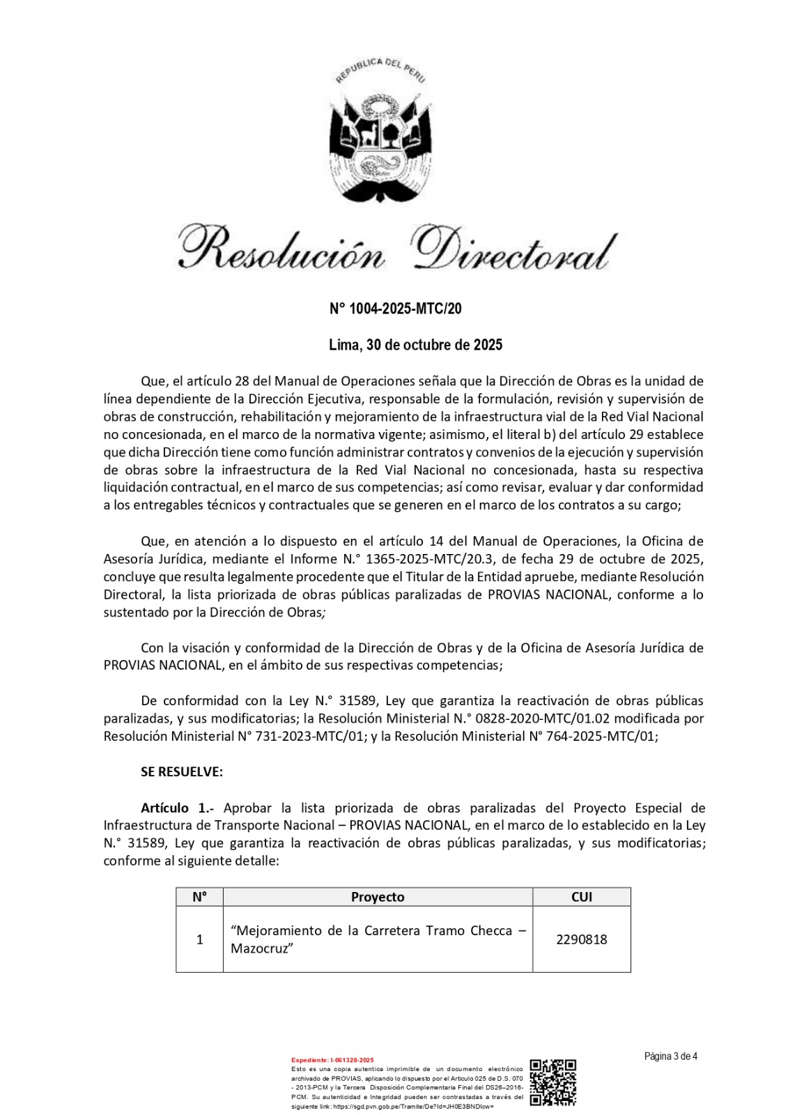 El Gobierno, a través del Ministerio de Transportes y Comunicaciones (MTC) y PROVIAS Nacional, anunció la reanudación de los trabajos en la carretera Checca – Mazocruz para la quincena de noviembre, luego de las gestiones impulsadas por la Municipalidad Provincial de El Collao – Ilave.