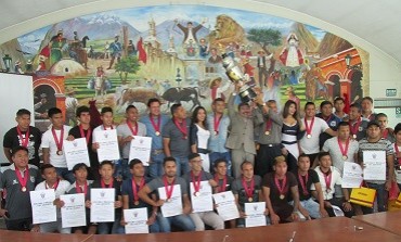 La ceremonia que se realizó esta mañana en auditorio de la comuna mistiana estuvo presidida por el alcalde Alfredo Zegarra Tejada, quien felicitó el título que logró un equipo que cuenta con el 80% de jugadores nacidos en la región Arequipa.