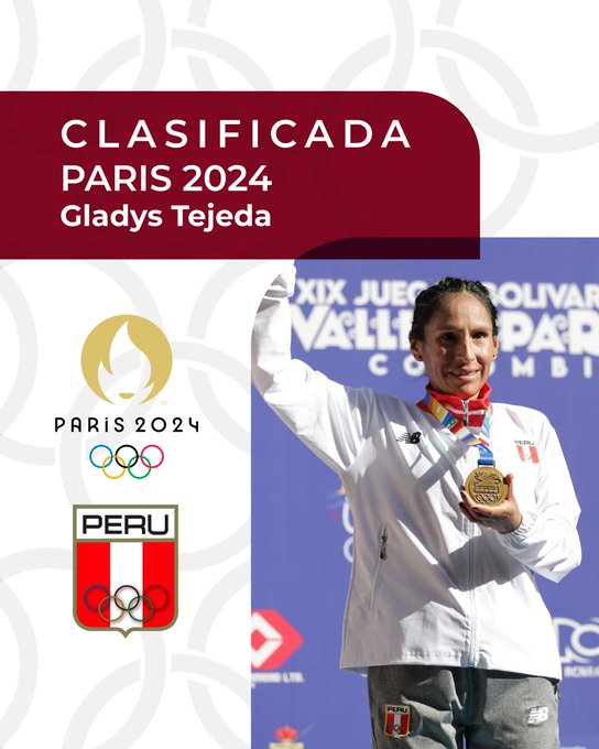«Gladys Tejeda clasifica a #París2024. Nuestra maratonista competirá en sus 4tos Juegos Olímpicos tras alcanzar la marca exigida por la World Athletics. La junta Directiva del COP felicita el esfuerzo de nuestra deportista quien es la 1era atleta en clasificar a los JJ.OO», informó el COP en sus redes sociales.