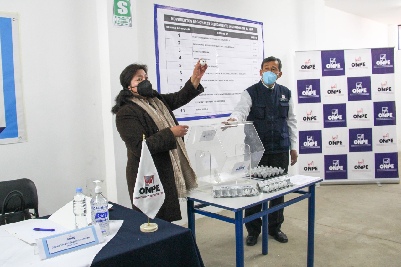 El sorteo de ubicación de 10 movimientos regionales y 1 alianza electoral inscritos debidamente en Registro de Organizaciones Políticas (ROP) se realizó utilizando el sistema convencional, consistente en extraer manualmente los bolillos de una urna.