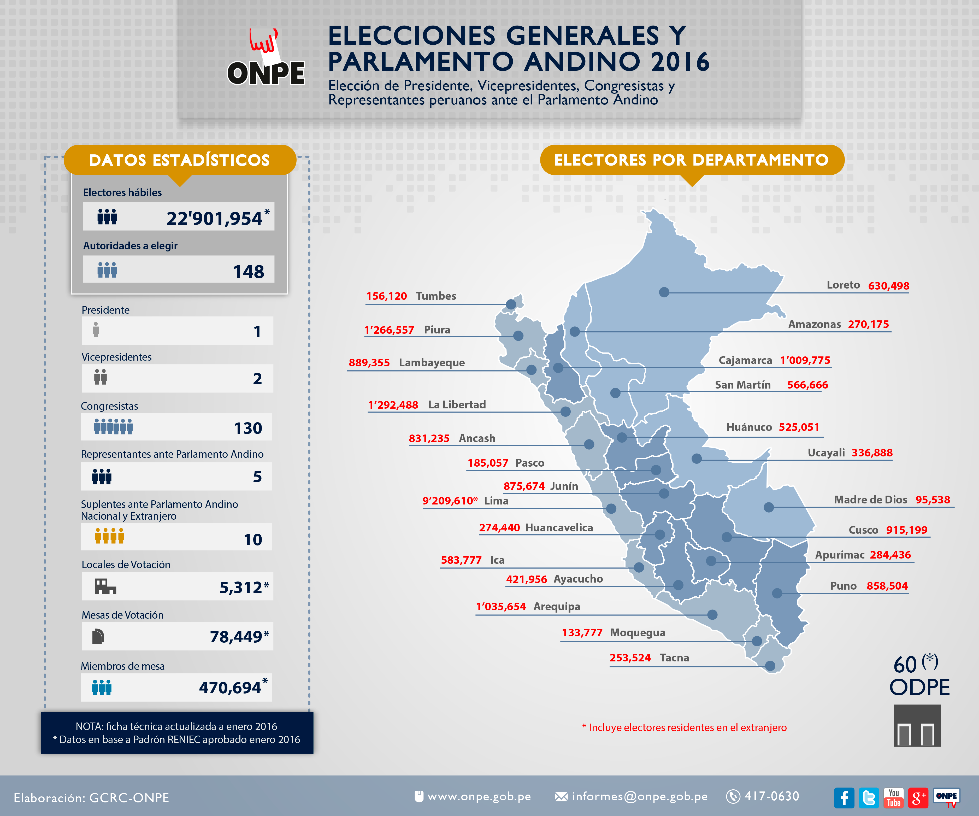 La ONPE ha publicado un mapa con la cantidad de electores y electoras habilitados en cada departamento del Perú para votar el próximo 10 de abril. Además, el Jurado Nacional de Elecciones ha desagregado la cantidad de electores por sexo en cada departamento.