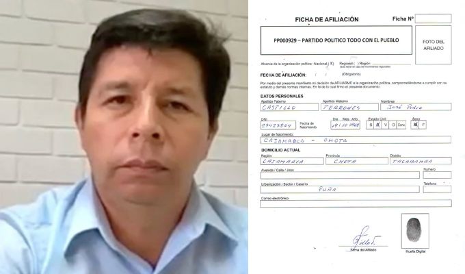 Este miércoles 26 de junio, el expresidente de la República, Pedro Castillo, anunció su afiliación al partido político «Todo con el Pueblo» en el marco de la decisión del Tribunal Constitucional de no declarar a favor el recurso presentado por su defensa legal que proponía sacarlo de prisión y retomar sus funciones como jefe de Estado.